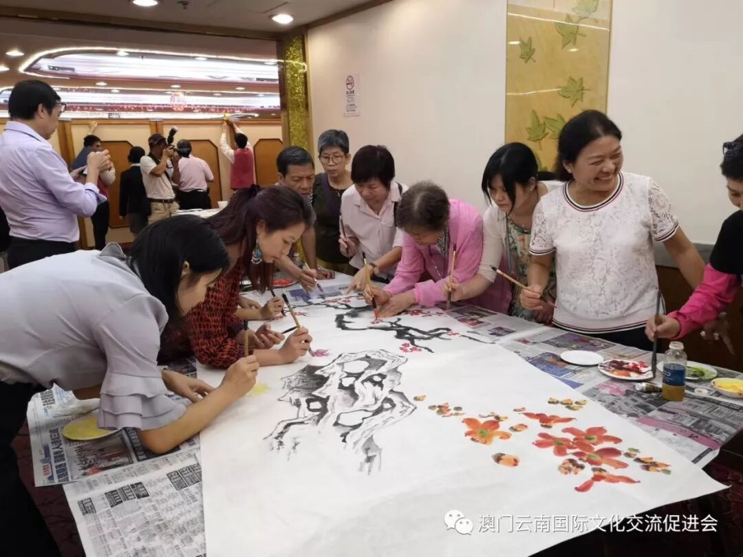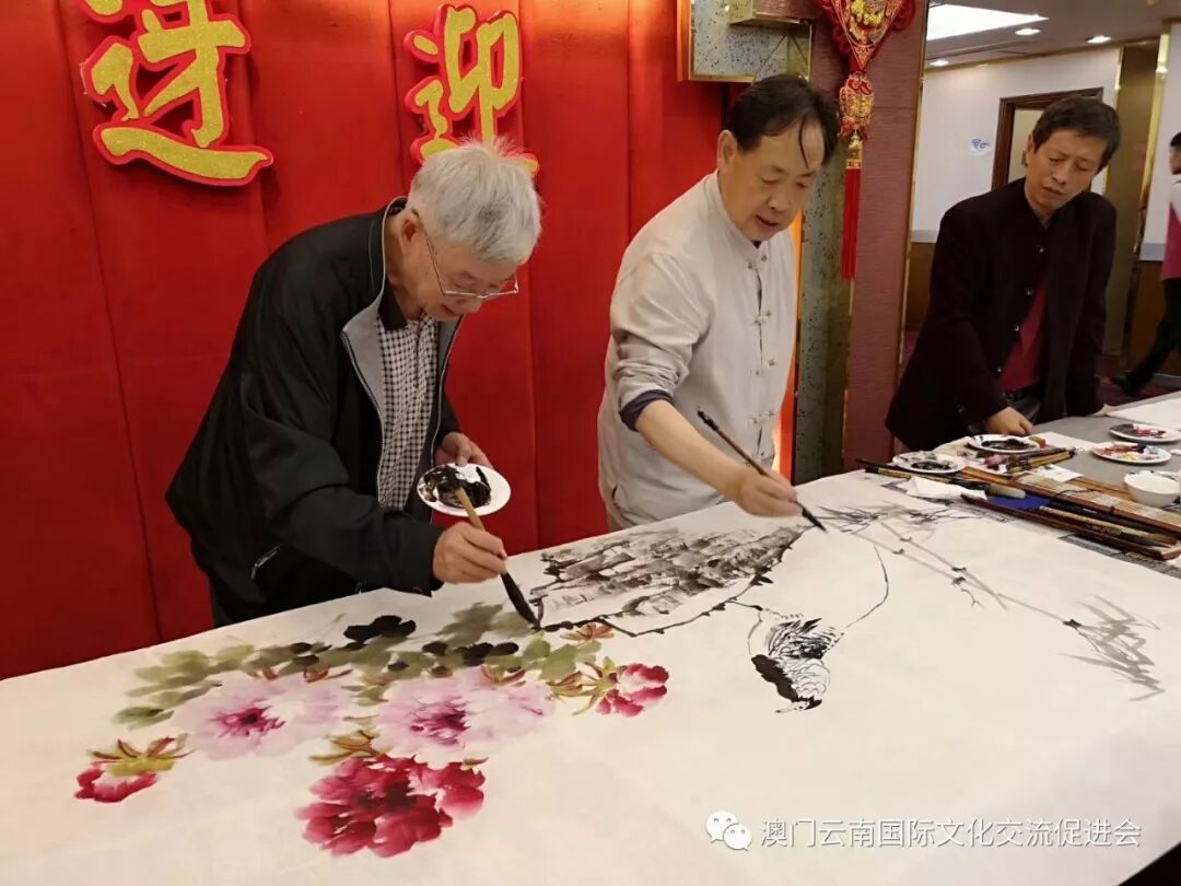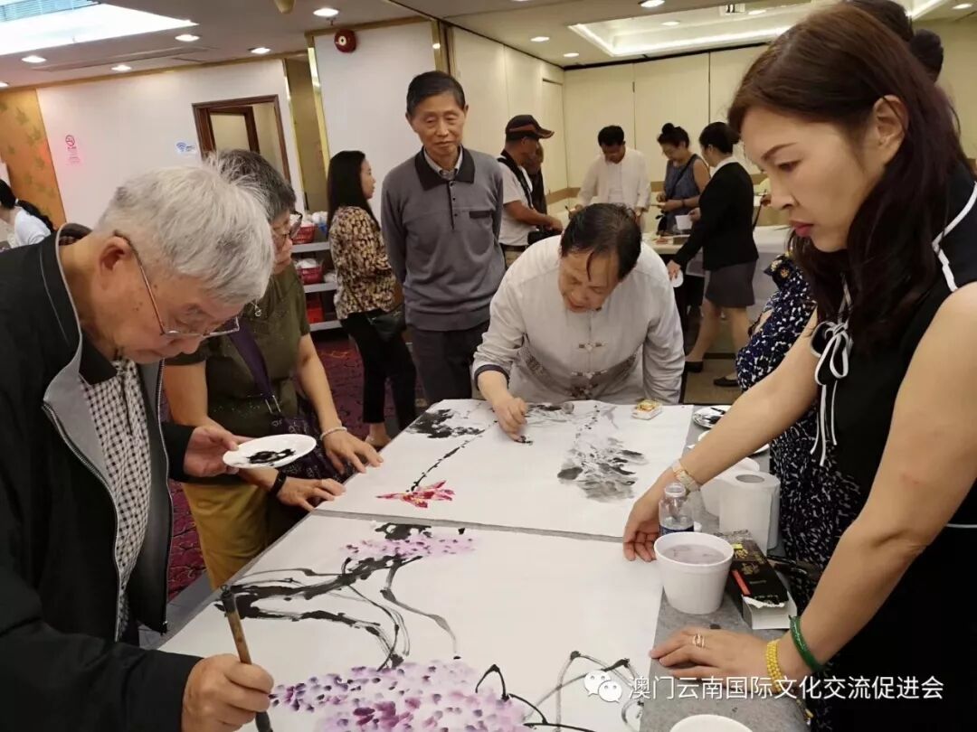 澳门云南国际文化交流促进会与澳门书画艺术联谊会,为传承中华优秀传统文化,在近年来多有合作,半个月前,云南还邀请了以李秋平为代表的部分澳门书画艺术家到昆明参加“翰墨牵两岸.四地一家亲一一庆祝中华人民共和国成立69周年两岸四地书画艺术展”,同时又举办了“嶺南風韻一一李秋平个人书画展。半个月后的今天,云南书画艺术家熊华君,彭放,刘宗骐,周亮,刘红,张学彦,严风扬,卢三星,杨林非,翟艳娜,蔡林含又与澳门的书画艺术们在这里相聚,这是一件非常开心的大喜事!