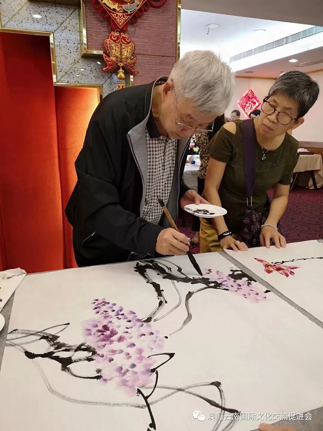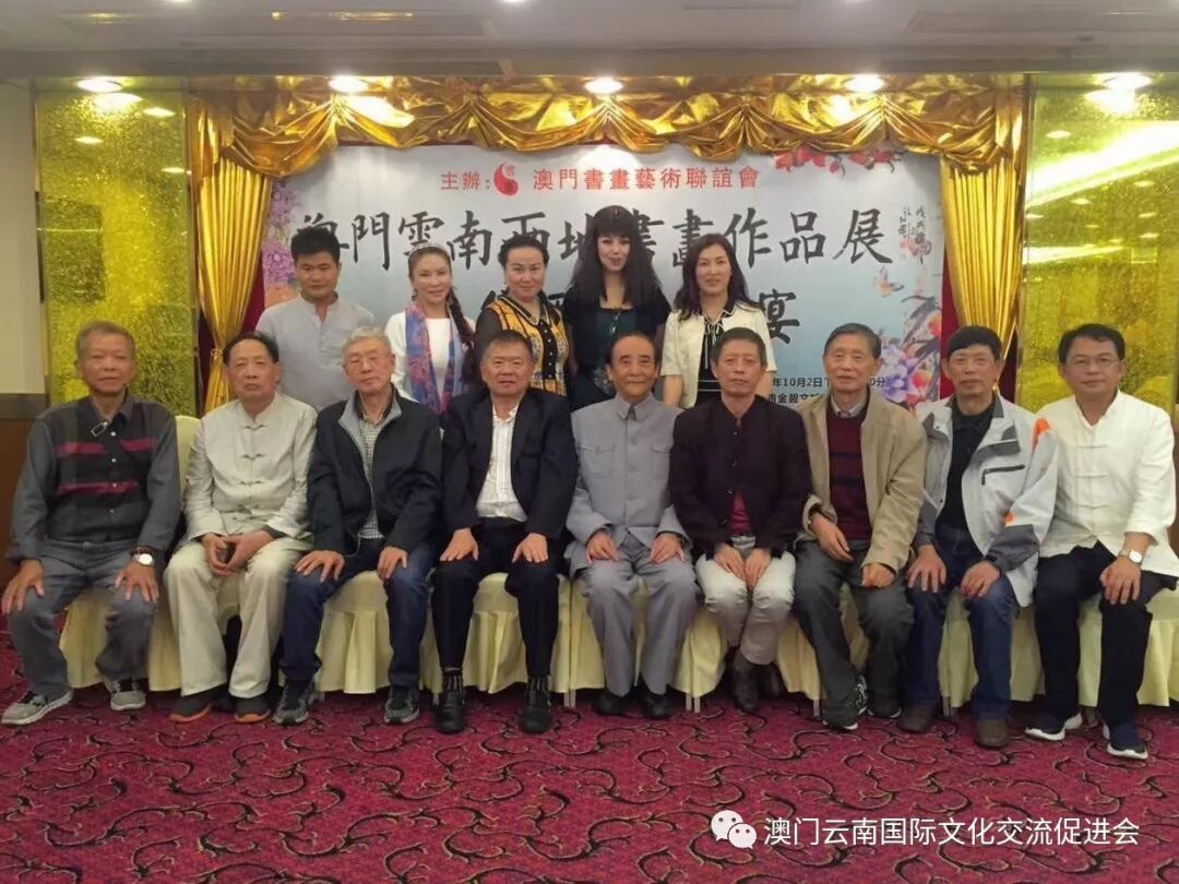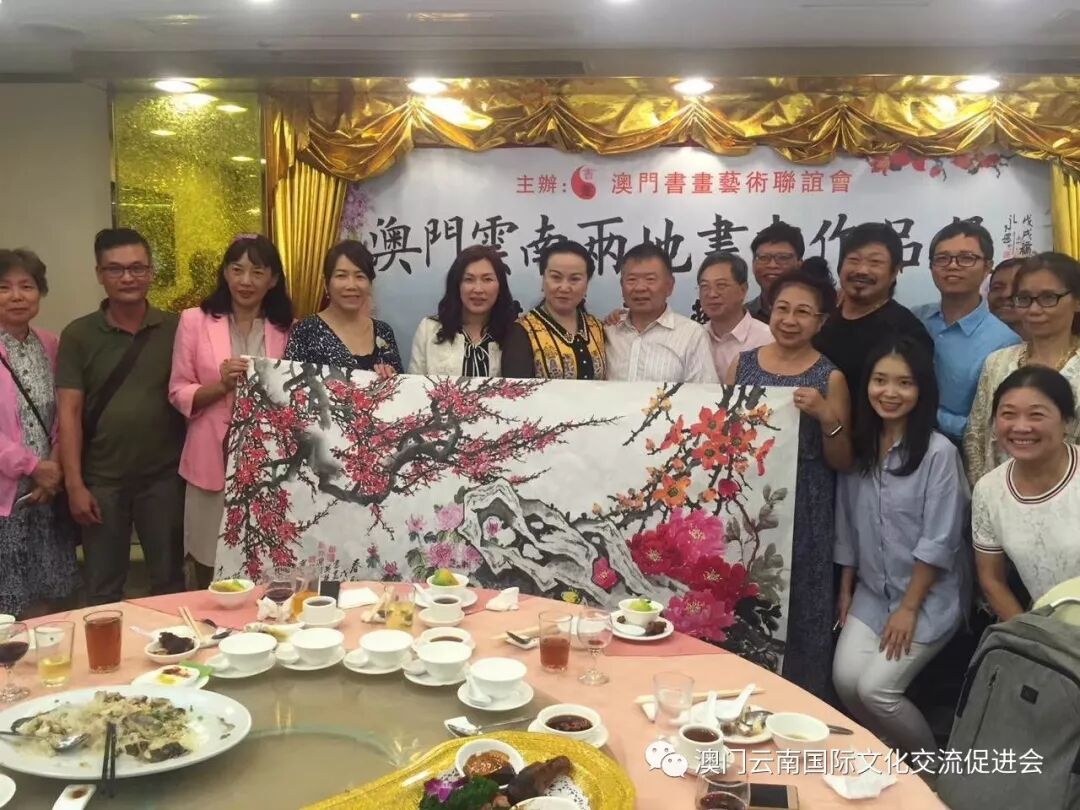 开幕庆典结束后,主办方于好世界酒楼席开四桌,宴请澳滇两地书画艺术家,并举行联谊笔会。